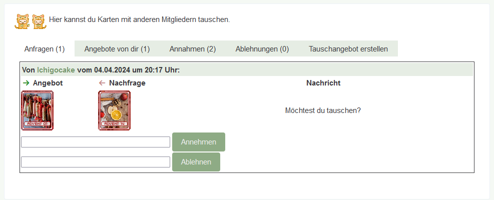 Es gibt diverse Spiele, bei dem amn karten erhalten kann, aber wie der Name schon sagt, liegt ein wichtiger Punkt auf dem Tausch der Karten zwischen den Spielern.