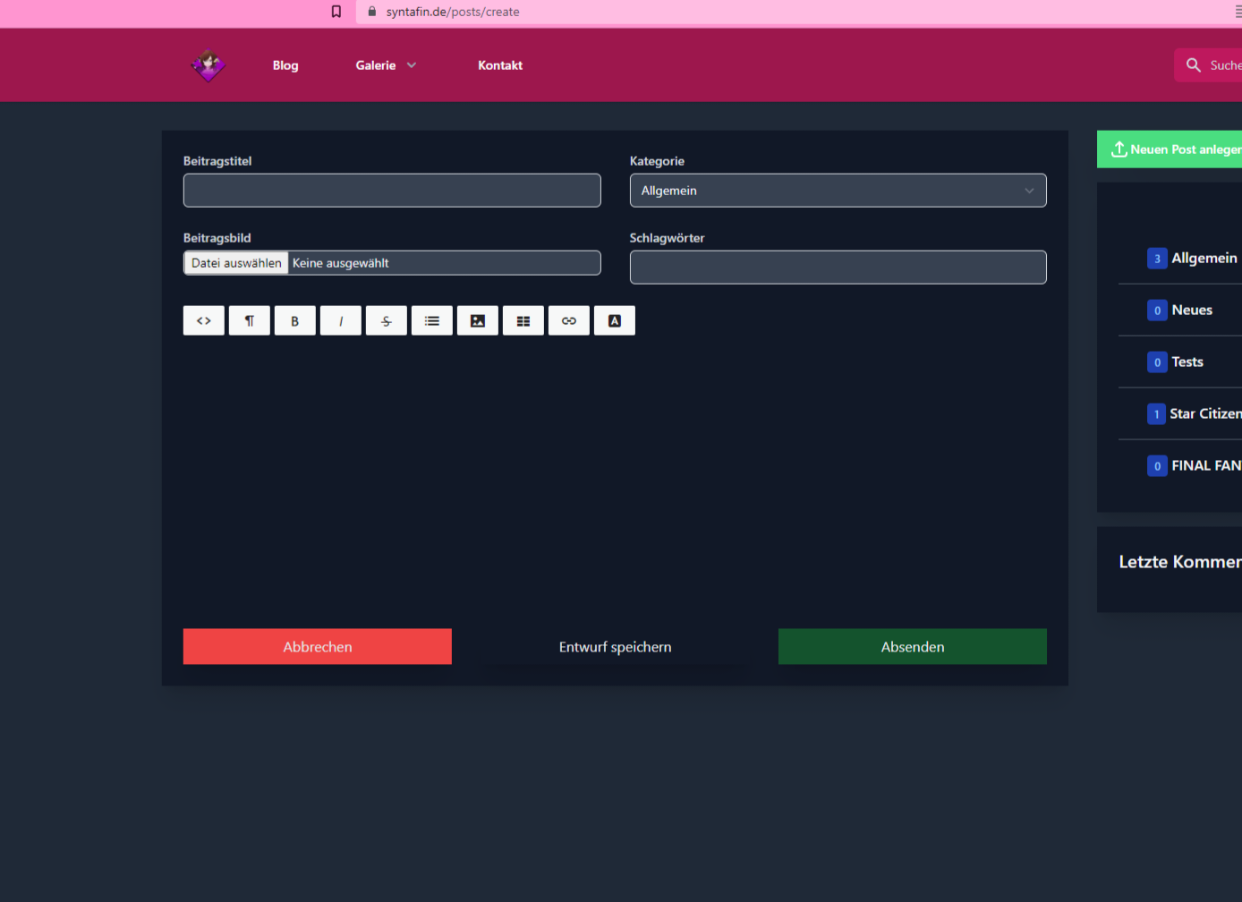Externer Inhalt youtu.beInhalte von externen Seiten werden ohne Ihre Zustimmung nicht automatisch geladen und angezeigt.Durch die Aktivierung der externen Inhalte erklären Sie sich damit einverstanden, dass personenbezogene Daten an Drittplattformen übermittelt werden. Mehr Informationen dazu haben wir in unserer Datenschutzerklärung zur Verfügung gestellt.Das zweite... hat aber nix mit dem Editor zu tun.