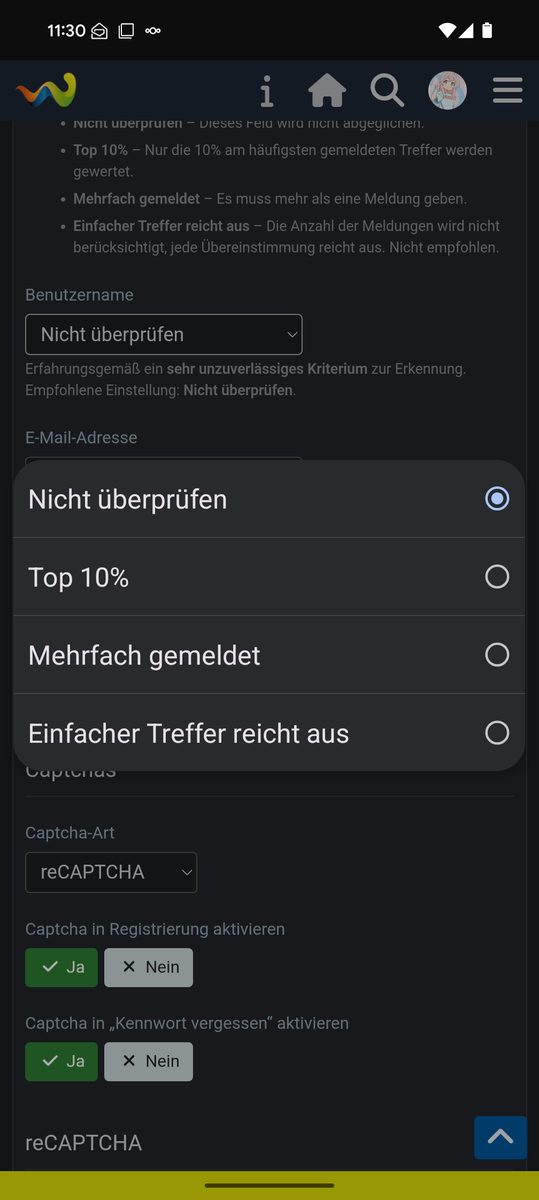 Damit wird je nach Einstellung bei Registrierung und Co. Benutzername, E-Mail und IP gegengeprüft und entsprechend der Einstellung gehandhabt.