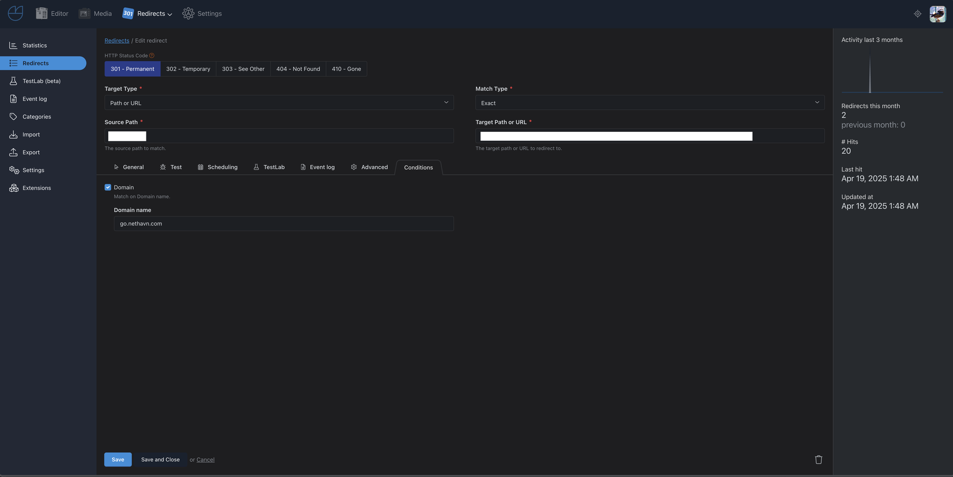 Beispiel: Shortlink Generator auf sl.example.com shortlinks URLs selbst sind aber sl.comIn meinem Beispiel fangen alle Shortlinks mit go.nethavn.com an. Nur wenn diese Domain stimmt, prueft mein Laravel den Sub-Path und routet entsprechend weiter.